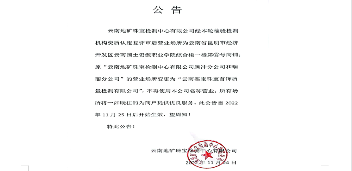 云 南 地 礦 珠 寶 檢 測 中 心 有 限 公 司